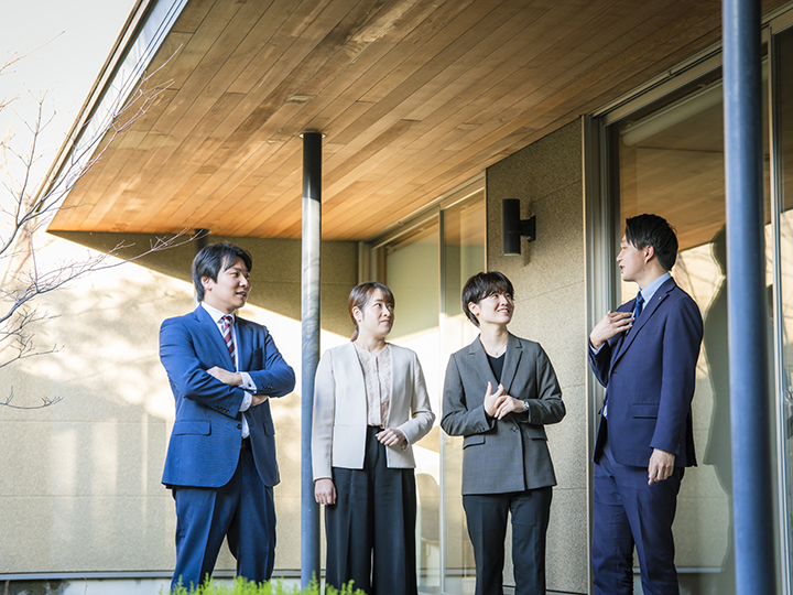 例えば、一邸ごとに、営業、設計、施工管理、インテリアコーディネーターの4人でプロジェクトチームを組み、カスタムメイドで住まいづくりを進めていきますので、ものづくりの醍醐味を味わうことができます。