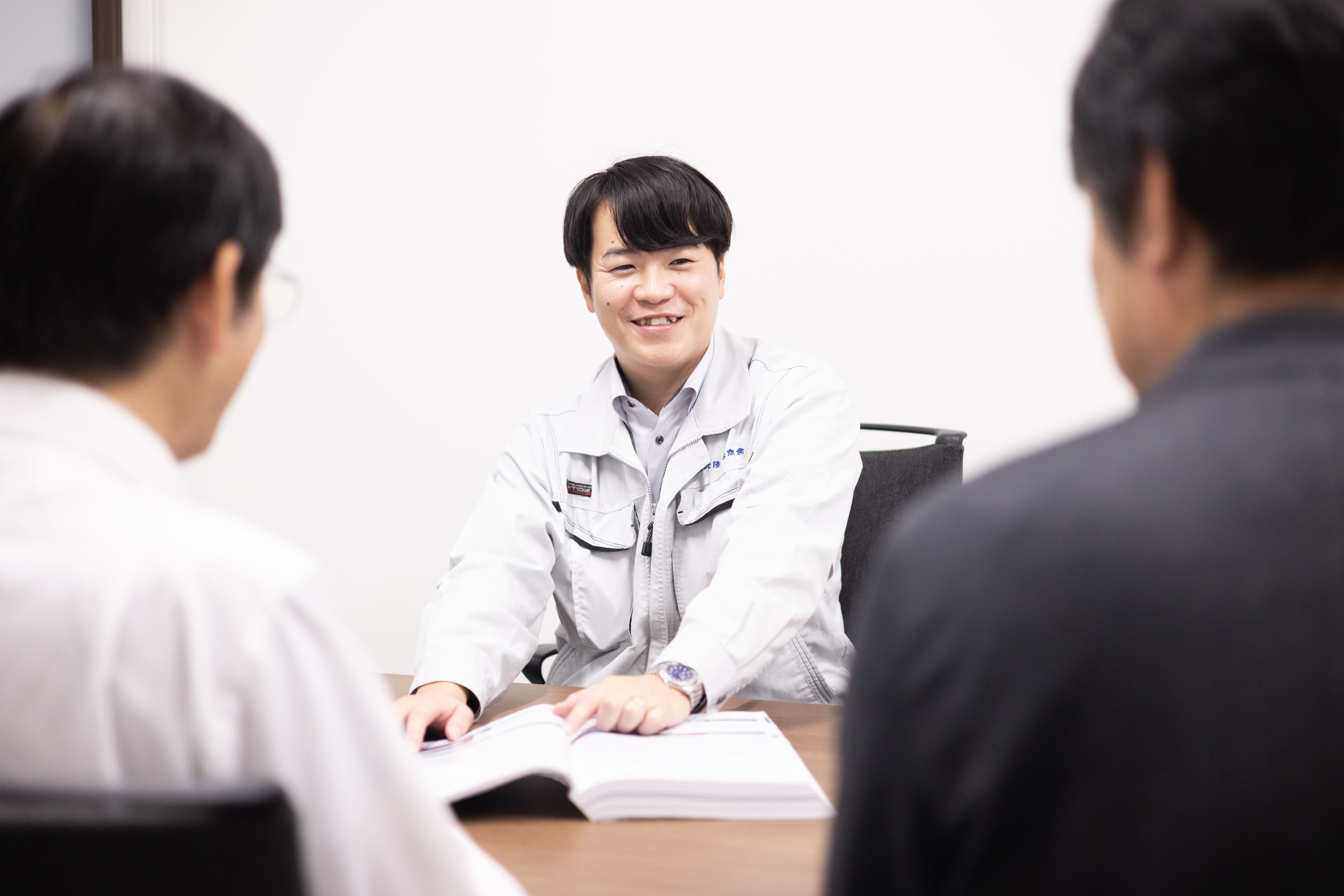 当社では、1社1営業社員が原則。つまり、お客様にとっては、担当の社員が「北陸電機商会代表」なのです。だからこそ、どこまで深く信頼いただけるかが重要になります。それは「御用聞き」とは違います。単に自社の利益だけを追うのではなく、かといってお客様の言いなりにもならない。真にお客様ご自身の利益となる広い視野こそが大切です。つまり、「お客様の成長=自らの成長」となる仕事ができる。それが当社の特徴の一つであり、社員一人ひとりのやりがいにも直結しています。「これで、みんなが喜ぶようなビル工事ができるよ。いい提案をありがとう!」とお客様から言われたときの喜びは、何物にも代えがたいですよ。