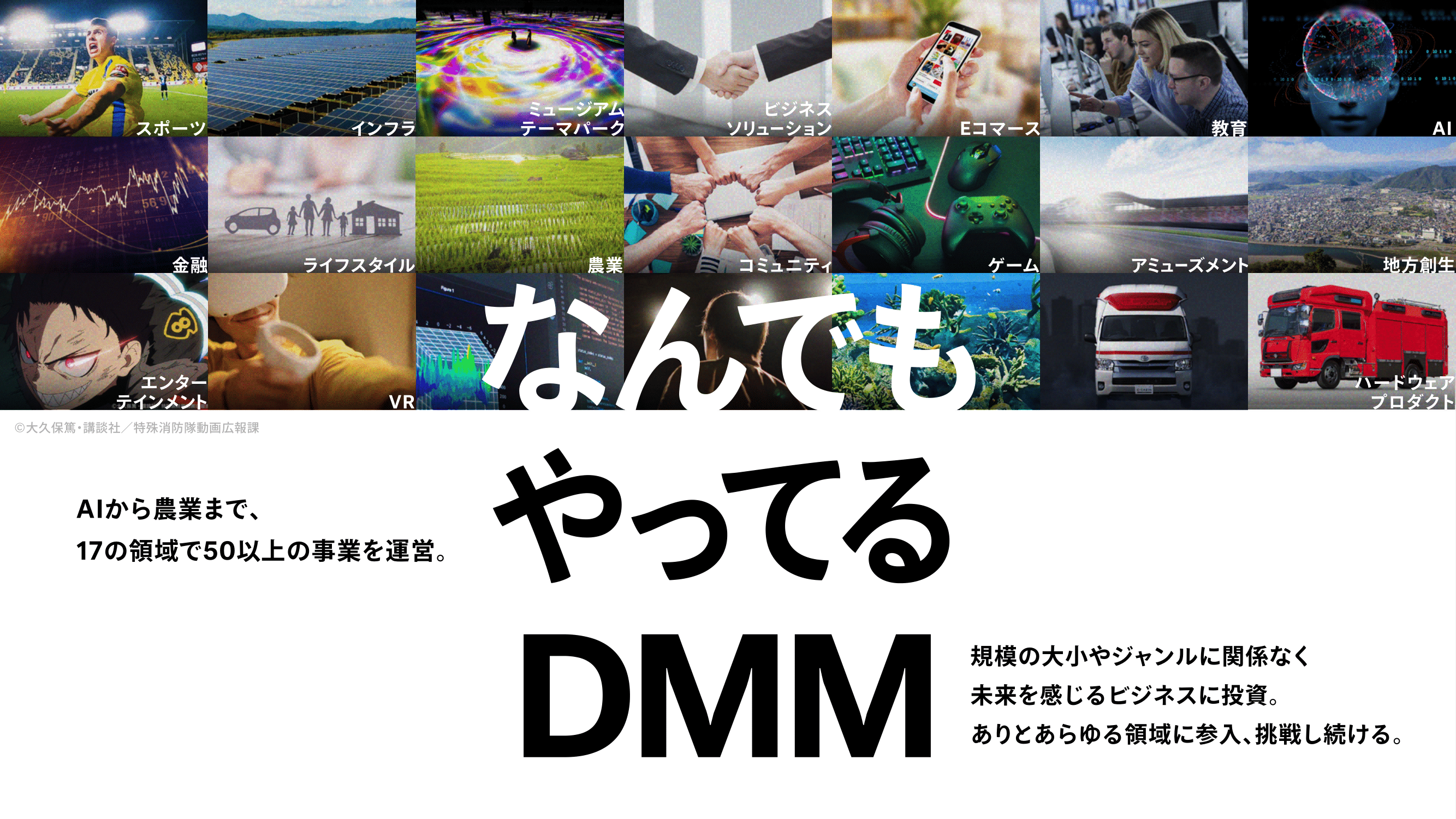 沖縄での水族館事業参入、ベルギーでのサッカークラブ経営など、様々な事業を手掛け、2018年より若手起業家の支援を強化、「DMM VENTURES」による出資や、M&Aなども積極的に展開しています。