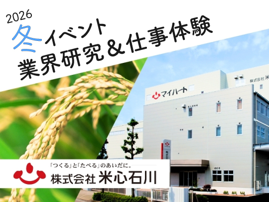 | 開催概要 | ・食品業界について ・米心石川について ・商品開発 グループワーク ★販売価格戦略体験 ★食味評価体験(おにぎり食べ比べ) ・先輩社員質問会 など |