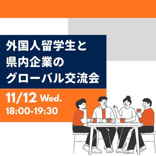 外国人留学生限定がいこくじんりゅうがくせいげんてい★ 県内企業けんないきぎょうと気軽きがるにコミュニケーションができる交流会こうりゅうかい...